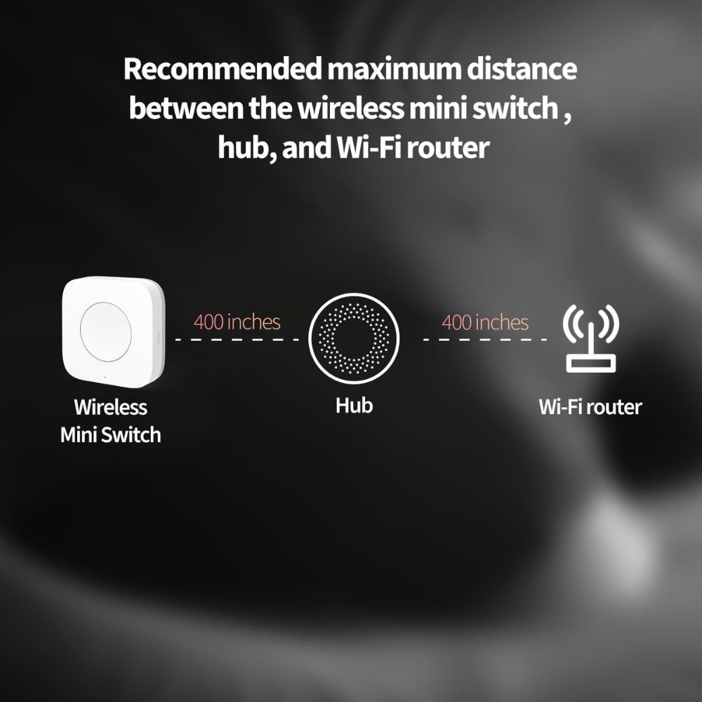- 【Proximity】For a sturdy connection, ensure that the Aqara Wireless Mini Switch is within 400 inches of the Aqara Zigbee hub, and the hub is within the same range from the Wi-Fi router. Additionally, make sure the hub and the router are on the same local area network (LAN).