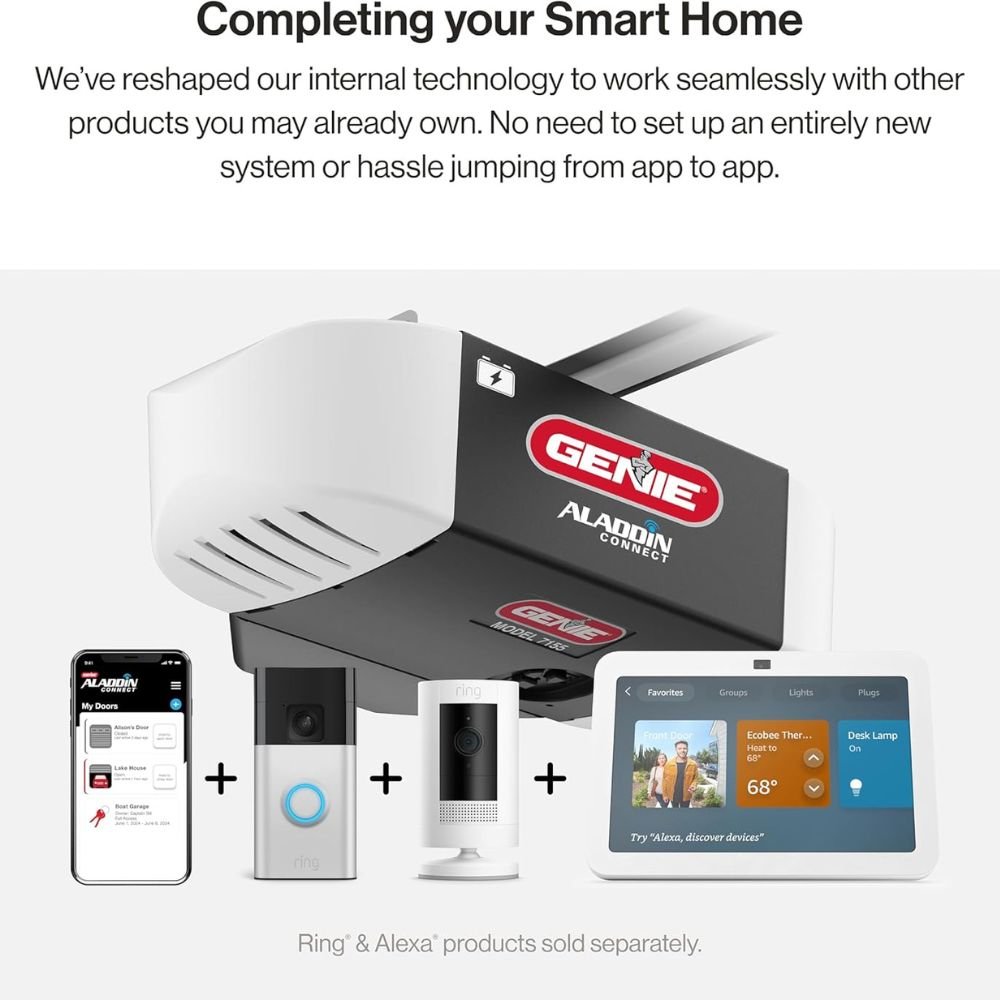 - With the Genie Stealth Drive Connect model 7155 garage door opener, you can monitor and close your garage door from anywhere with the integrated Aladdin Connect technology