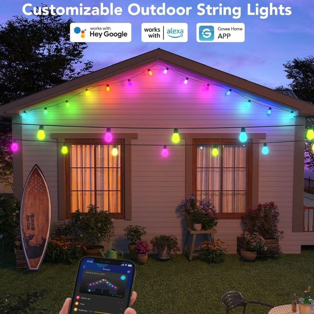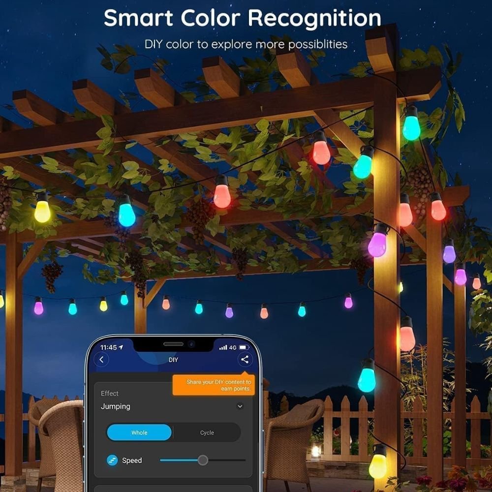 - Exquisite Outdoor Decor: A fascinating display of colors will appear on the smart LED Bulbs, which elevates your outdoor decoration aesthetic and suitable for party decorations and holiday decorations.