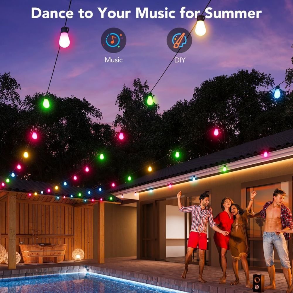 - Music Sync Mode: Dance the night away as the outdoor lights for patio react to your songs via the integrated mic. With the patio lights outdoor waterproof don’t only hear your music, but live it with beautiful dynamic lighting.