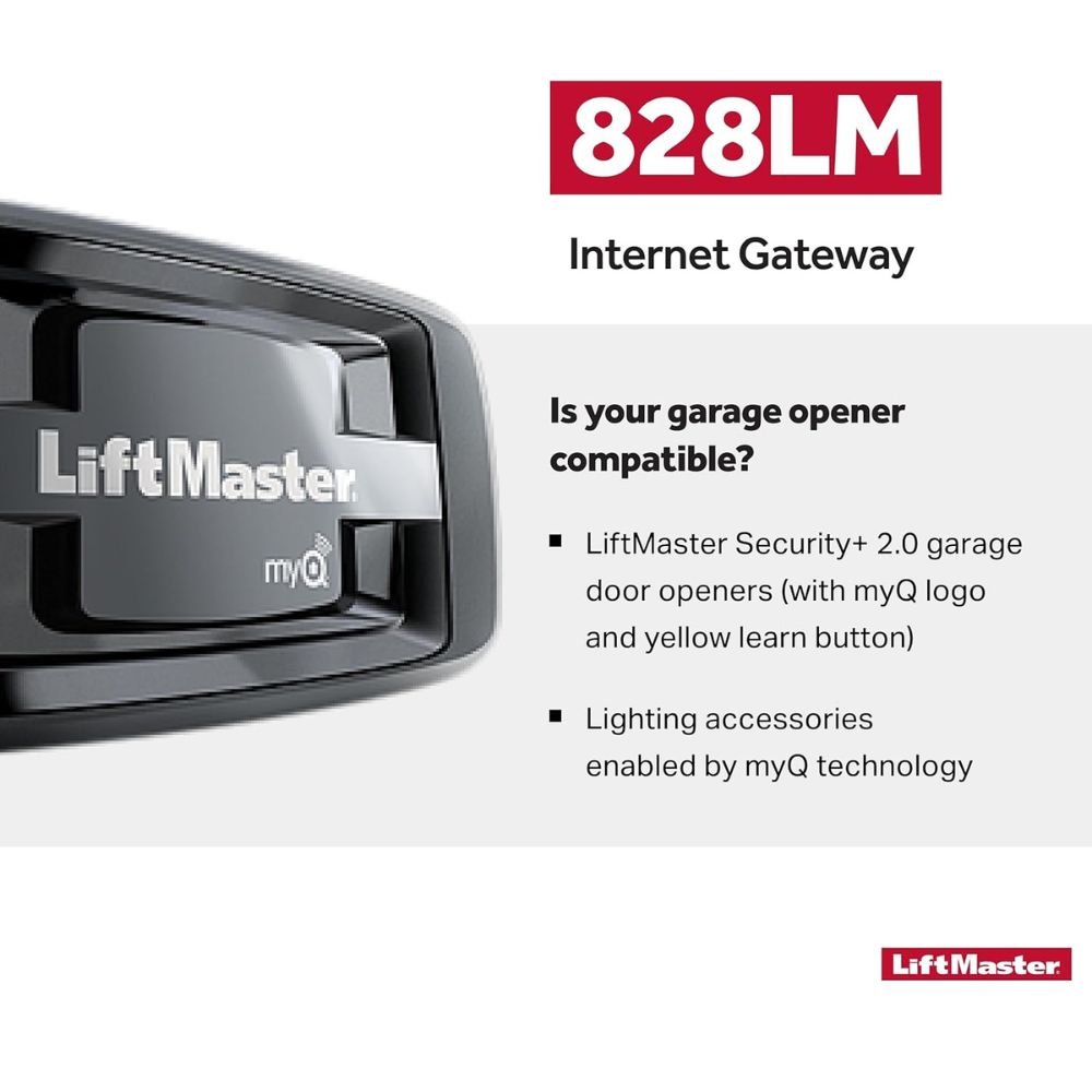 - Compatibility: Compatible ONLY with LiftMaster Security+ 2.0 garage door openers (with myQ logo and yellow learn button) and lighting accessories enabled by MyQ technology