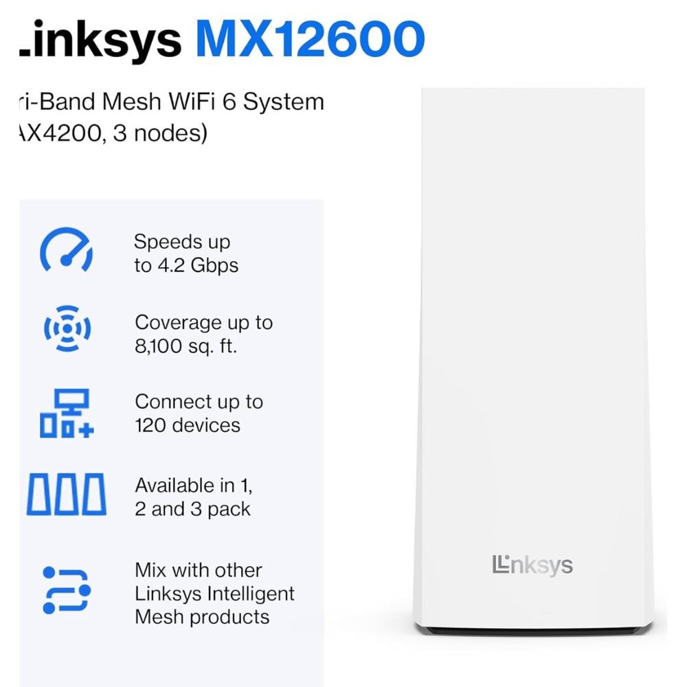 - EASY SETUP & CONTROL: Wireless routers set up in minutes with the free Linksys App, allowing seamless management of your mesh network system from home or on the go